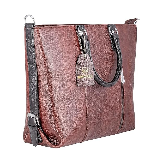 AMOREE Full Grain Leather Shoulder Laptop 3 Handle Bag for Women – Laptop Size 14 Inch & 15.6 Inch – Handbag/shoulder Bag for Women